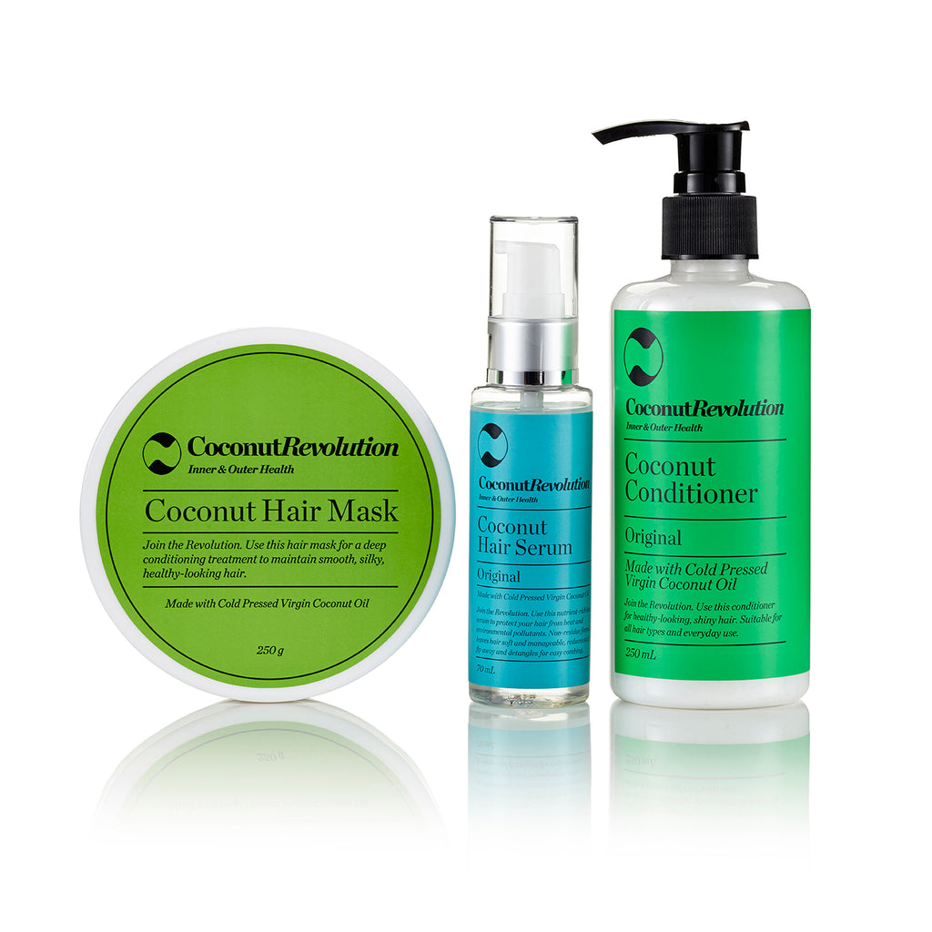 Spoil yourself or someone special with this Deep Conditioning Hair Pack. With products from the Hair Revolution range, the combination is ideal for healthy hair and luscious locks! The Deep Conditioning Hair Pack contains Coconut Conditioner, Coconut Hair Mask and Coconut Hair Serum in a beautifying gift pack!