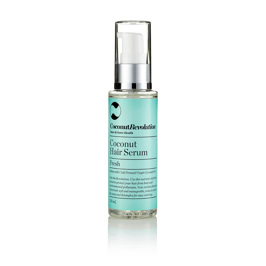 Apply Coconut Revolution Hair Serum to damp or dry hair. Dispense one pump (or more for long hair) onto the palm of your hand then massage both hands together to warm serum. Using both hands, massage serum evenly through hair, focusing on ends. Can be applied sparingly to scalp. Do not rinse.